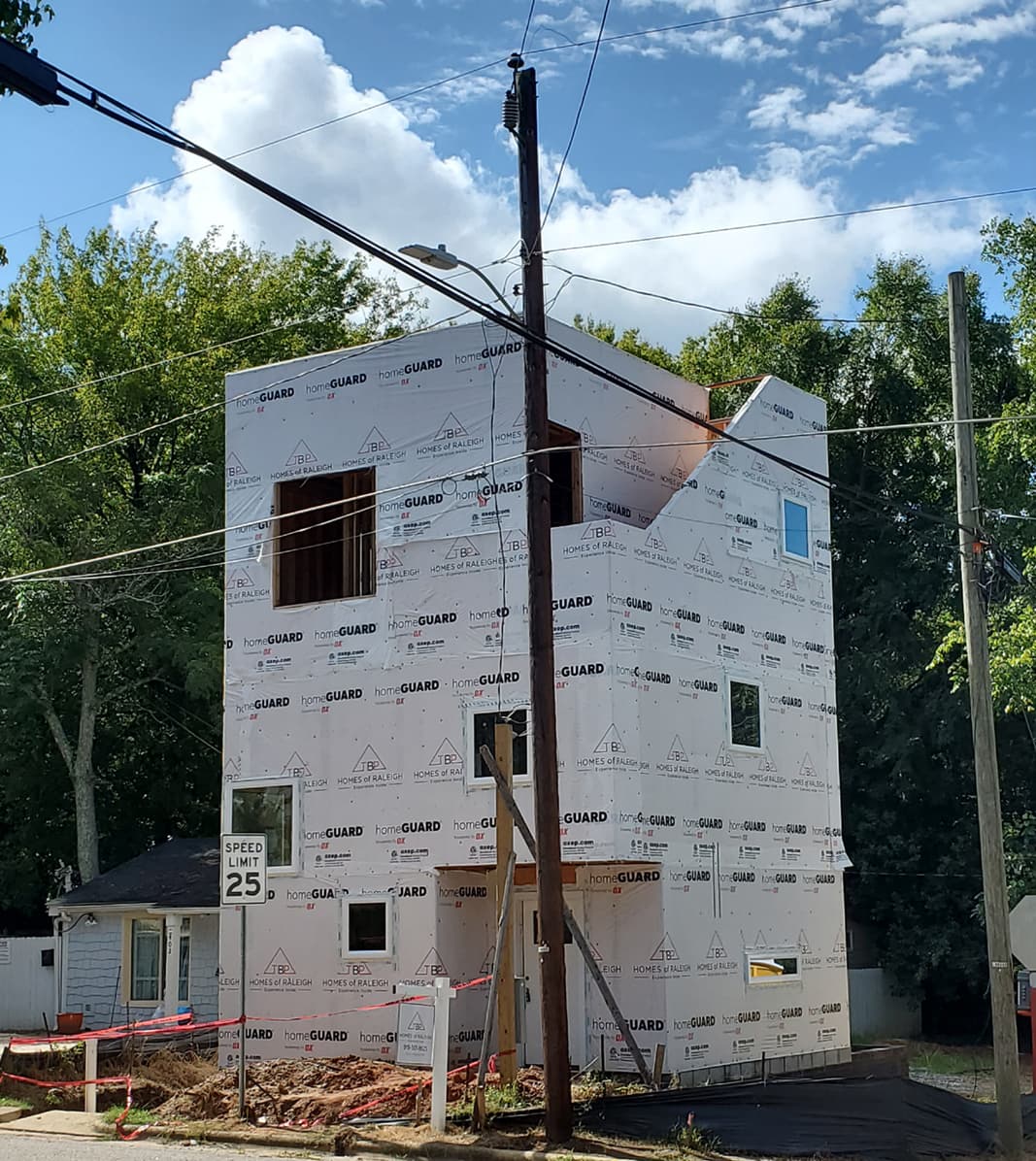 (Donât get me wrong, the developer-mod houses are often trash, but this one looks architect-designed, has a thoughtful composition, and really efficient plan. Seeing the photos makes me think they got tired by the time they composed the facade that isnât shown in the slick renderings lmao, but still⌠I think itâll look sharp when finished.)