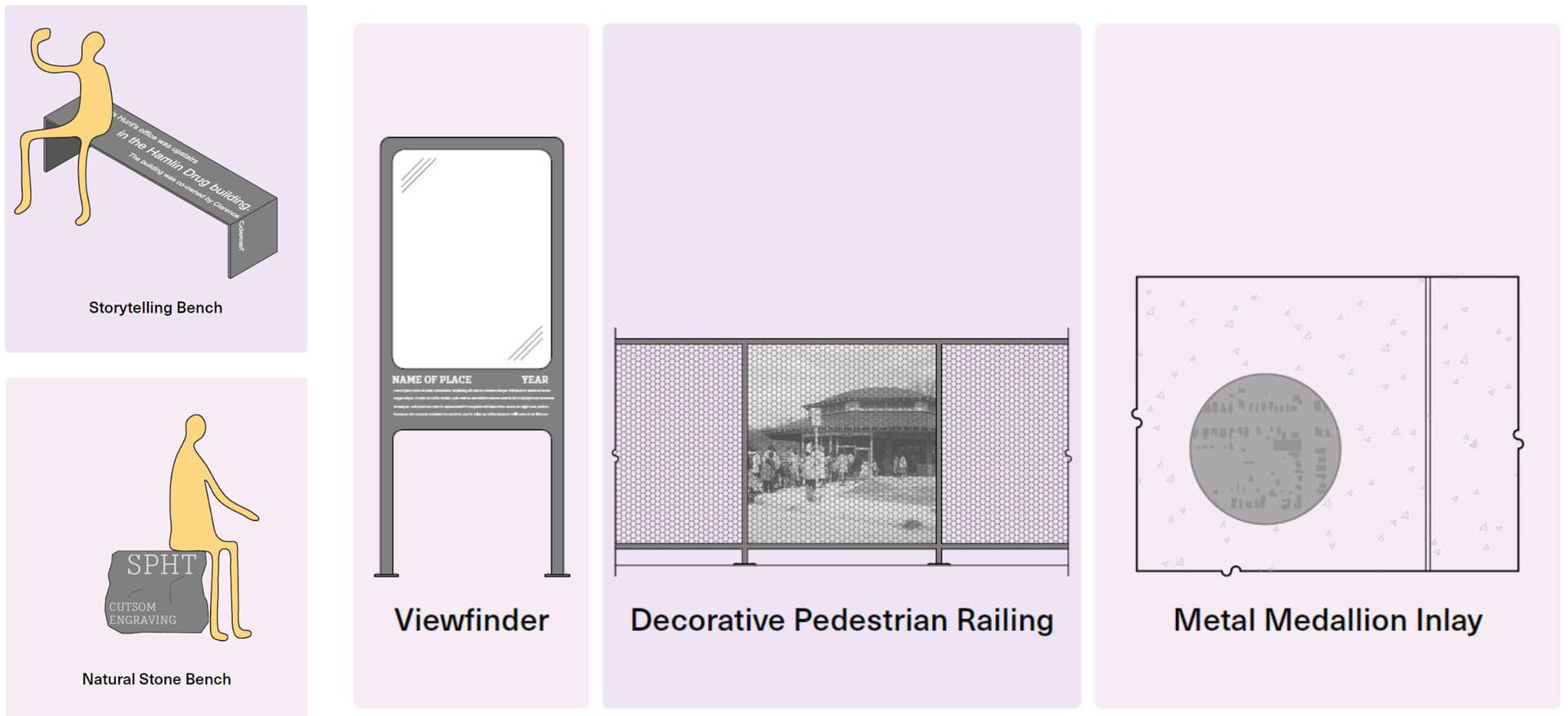 …as well as benches, fences, and other features that invite people to interpret the historic legacy of the place that they’re walking around.