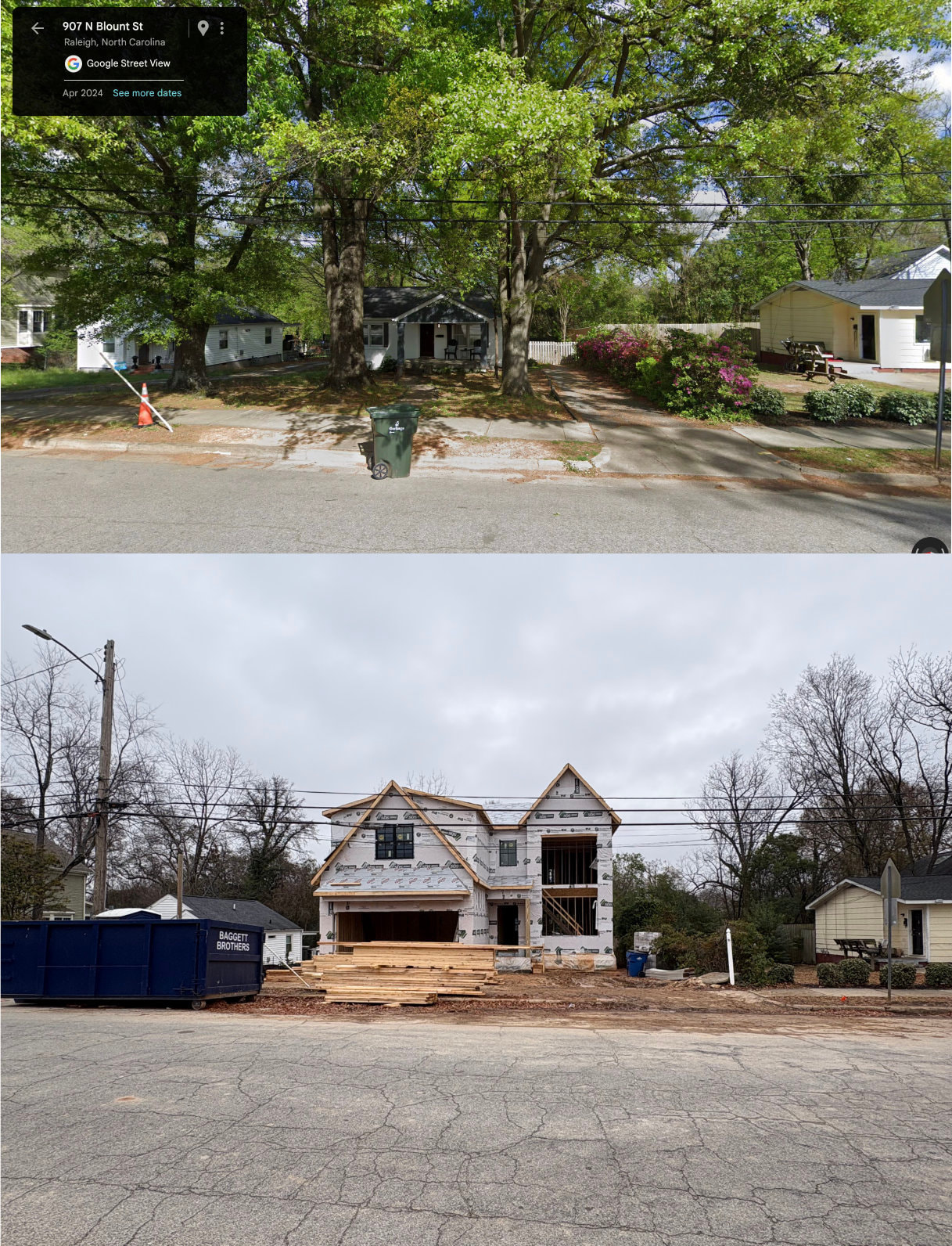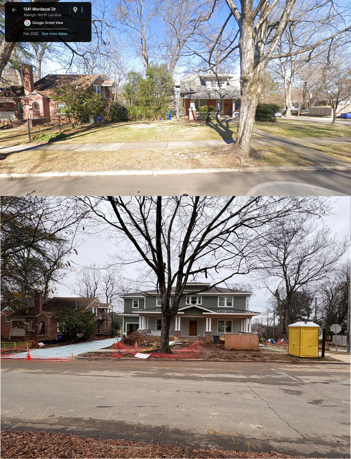 1341 Mordecai, loosing density with this one. The previous house was multifamily as a duplex. The upper level was a separated and possibly a separate unit behind it if it was a triplex.