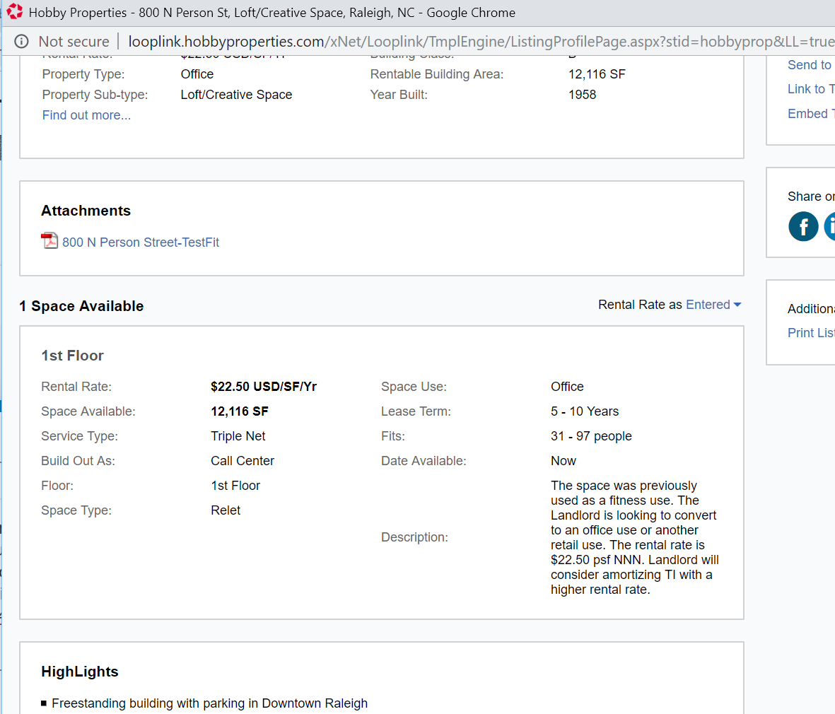 The property is listed for rent by Hobby Properties (same people?) at $22.50/sqft so 272,610 per year. They could build three stories, but do not seem interested.
